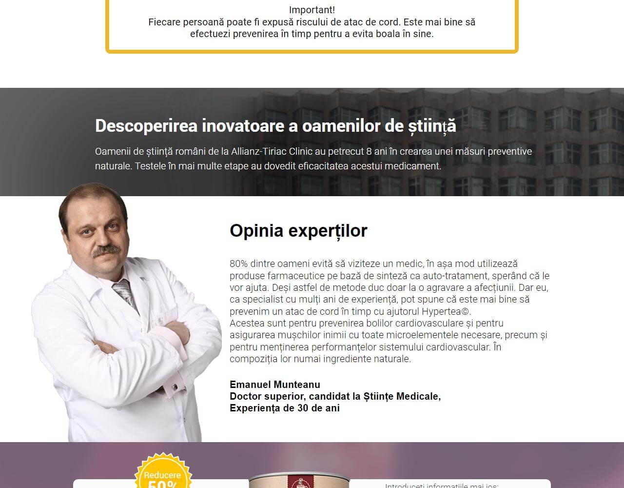 "Sunt obișnuit cu hipertensiunea mea, așa că iau medicamente pentru tensiunea arterială în fiecare zi de 7 ani. După cum știți, efectul acestora este de scurtă durată, dar nu te poți da jos din pat fără ele. Ce bine că într-o zi am dat peste recenzii despre Hypertea de la presiune. Am fost foarte surprins de afirmațiile zgomotoase că aceste capsule tratează hipertensiunea în doar 28 de zile, eliminând nevoia de medicație zilnică. Am comandat o mostră și am luat zilnic pastilele conform instrucțiunilor. În această perioadă m-am simțit minunat, presiunea ca un astronaut, dar mi-era teamă că efectul se va opri la sfârșitul tratamentului. În zadar! De 4 luni nu-mi mai amintesc de fosta boală."