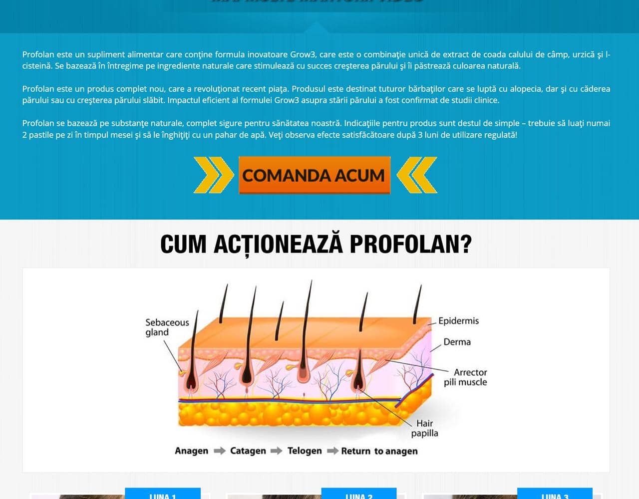 Astfel, Profolan este un remediu modern și foarte eficient pentru uz extern. Acesta ajută la tratarea bolii „alopecia androgenică” și restabilește densitatea și vitalitatea părului. Profolan poate reda încrederea tuturor celor care se confruntă cu problema căderii părului și ajută la uitarea acesteia pentru o lungă perioadă de timp!
